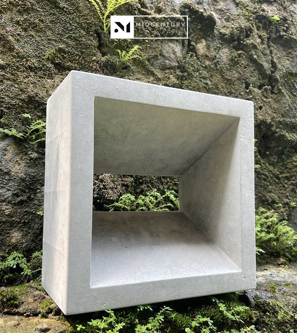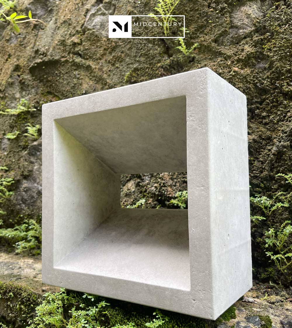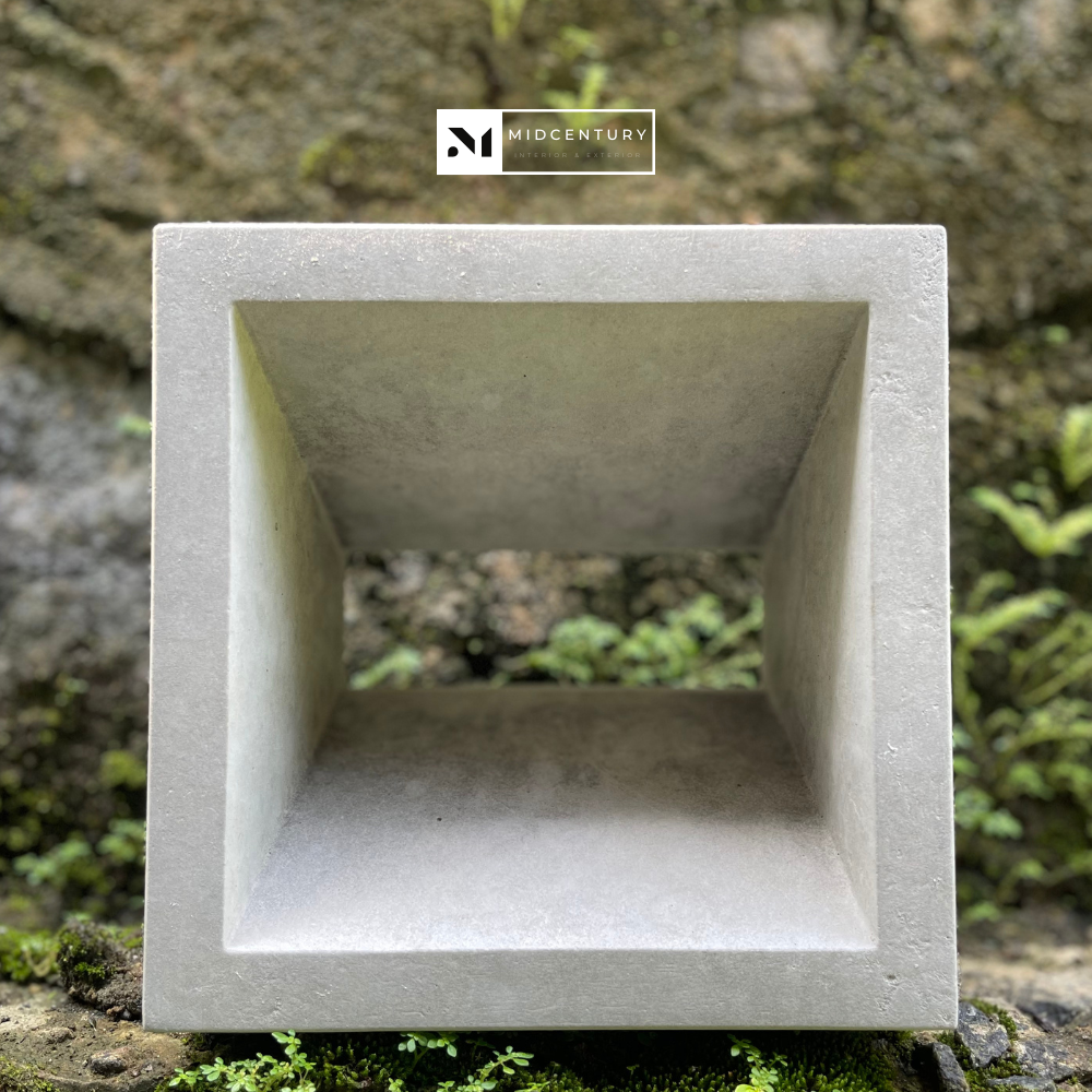 This single-sided breeze block features a deep square void framed by clean, solid edges, creating a bold sense of depth and shadow. The recessed opening allows controlled airflow while maintaining privacy, making it well suited for contemporary architectural applications.