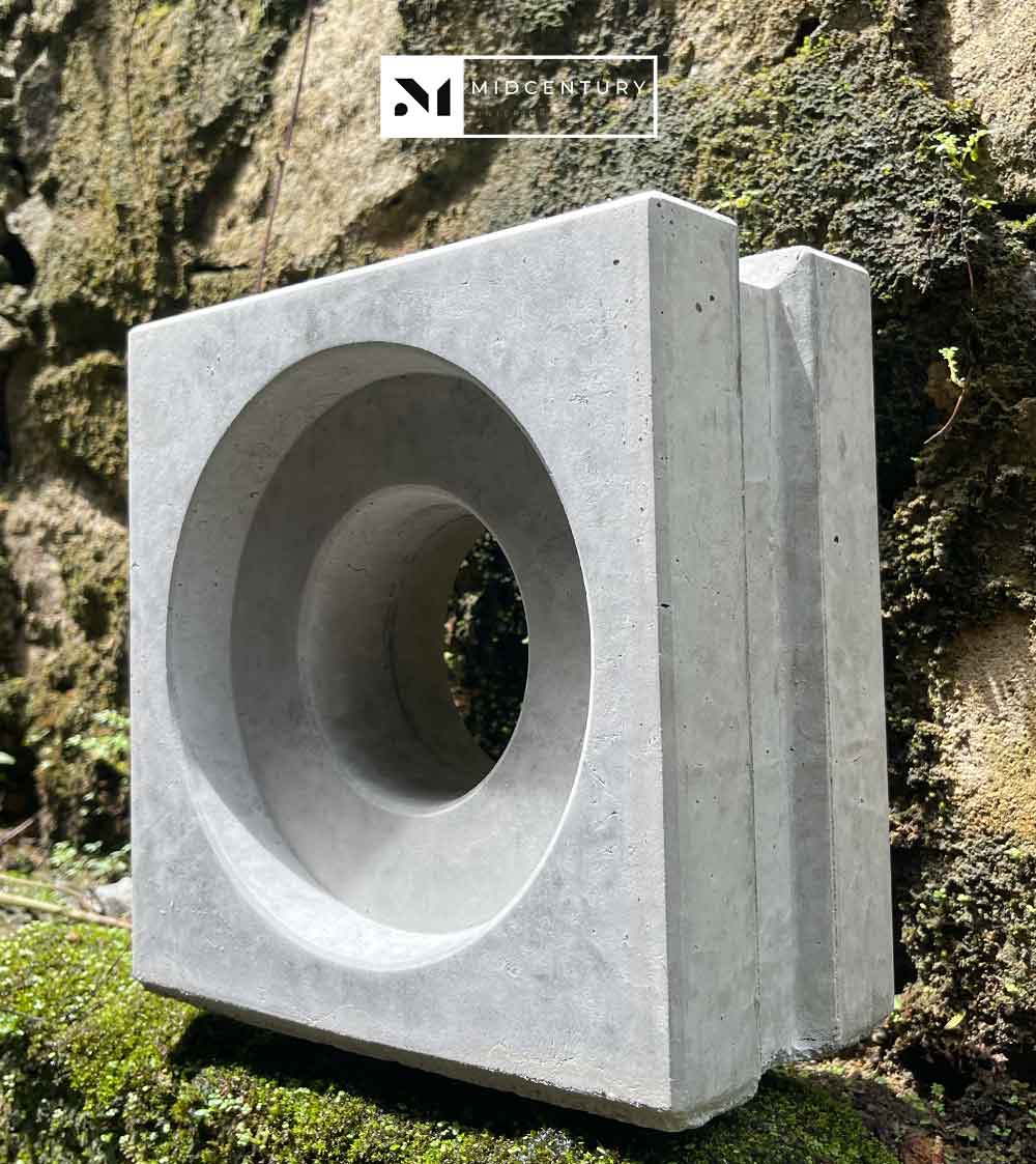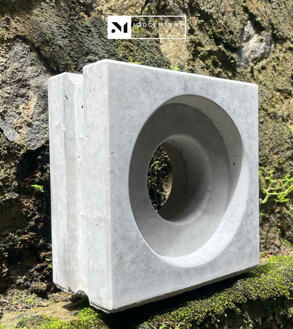 This double-sided breeze block features a deep concentric circular recess with a central opening, creating a layered composition that allows light and airflow to pass smoothly through the wall. The stepped circular geometry produces soft shadow transitions and a calm, sculptural presence when viewed from both sides.