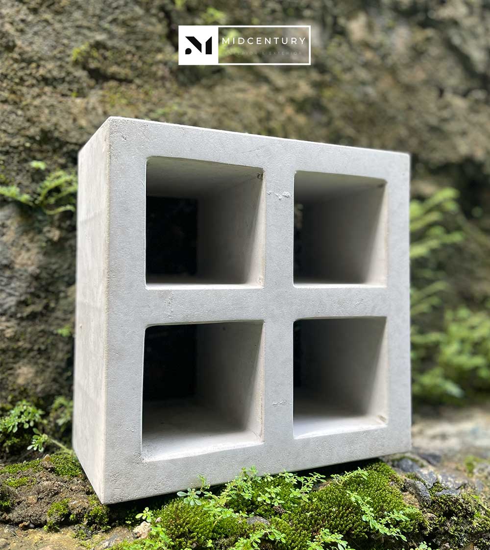 Featuring a clean and minimalist four-square design, the Nimbus block exudes simplicity and elegance. Ideal for both interior and exterior walls, its understated style seamlessly complements modern, minimalistic architecture. The versatile design of Nimbus ensures it adds subtle texture and visual interest without overwhelming the surrounding space.